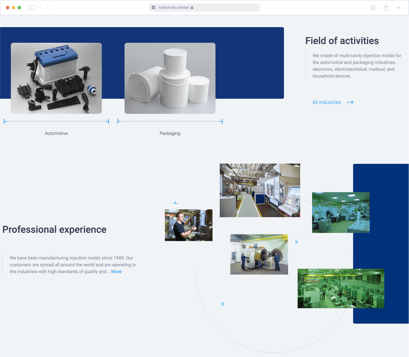 Spetztekhosnastka Ltd to ukraińskie przedsiębiorstwo, założone w 1989 roku w Dniprodzerżyńsku (obecna nazwa: Kamieńskie) jako firma specjalizująca się w produkcji stempli i form. Z biegiem czasu działalność firmy uległa zróżnicowaniu i obecnie, oprócz wytwarzania form do produkcji wyrobów z tworzyw sztucznych, Spetztekhosnastka produkuje szeroką gamę sztywnych opakowań z plastiku dla przemysłu spożywczego, farb i lakierów. Ponadto od 2008 roku zajmuje się produkcją elementów z tworzyw sztucznych potrzebnych w produkcji europejskich samochodów. Życzeniem klienta było stworzenie reprezentacyjnej strony internetowej dla firmy, która zademonstruje przyszłym partnerom zalety ukraińskiej produkcji wysoką jakość produktów i najwyższy poziom organizacji, dzięki którym zakład jest cudem inżynierii.